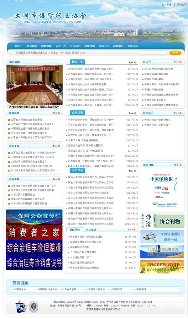 大同市保險(xiǎn)行業(yè)協(xié)會(huì)網(wǎng)站2017改版升級(jí)完成