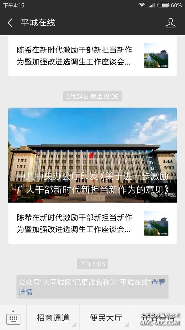 “大同城區(qū)”微信公眾平臺(tái)更名為“平城在線”