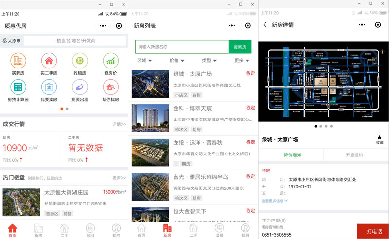 新優(yōu)居的智能化體現(xiàn)在方方面面,不同設(shè)備來訪問網(wǎng)站前臺時,自動顯示與之最相適應(yīng)的界面。并將房產(chǎn)數(shù)據(jù)以電腦端+手機(jī)端+微信端+小程序+APP(開發(fā)中)的不同形式
