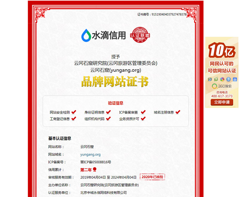 祝賀云岡石窟網(wǎng)站通過信用聯(lián)盟安全認(rèn)證檢測及官網(wǎng)標(biāo)識(shí)