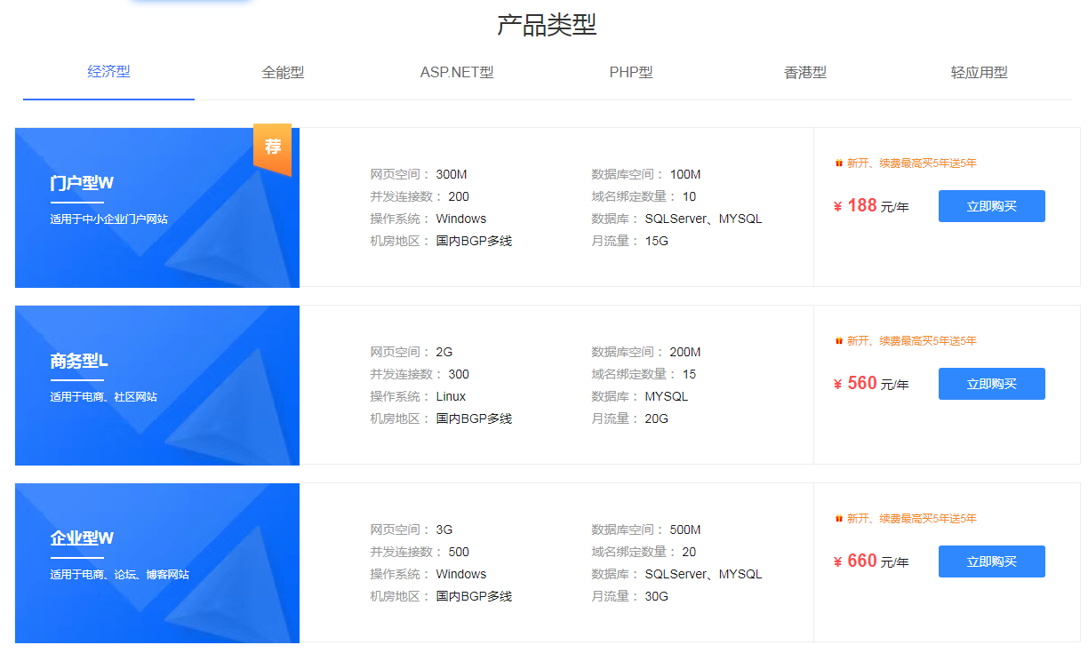 空間/虛擬主機(jī)(需每年續(xù)費(fèi)) 虛擬主機(jī)商就太多了,比較大的阿里云、新網(wǎng)等等,其中還有香港主機(jī),美國主機(jī)等等,不想備案的可以選擇國外主機(jī),一般企業(yè)站,200m空間足夠,價格在200元左右。