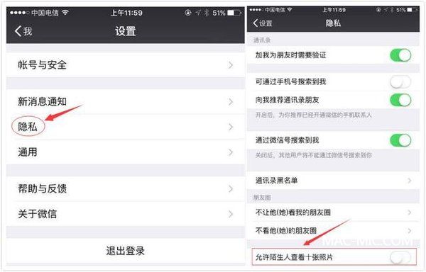 點(diǎn)擊[我]—[設(shè)置]—[隱私],拉至頁面最下方,找到[允許陌生人查看十張照片]功能,滑動關(guān)閉它。