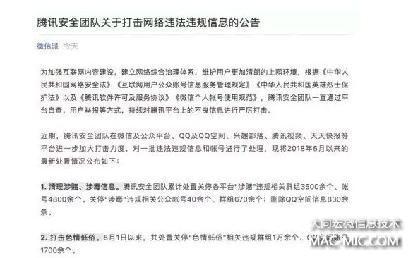 騰訊今日宣布關閉多平臺帳號累計4800余個 審查 移動互聯(lián)網 微信 微新聞 第1張